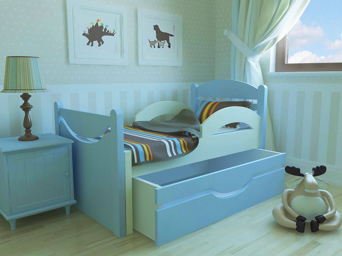 Для малышей кроватки делают с бортиками, а детям постарше, очень нравятся тематические модели в виде автомобилей популярных марок, корабликов и т. д.