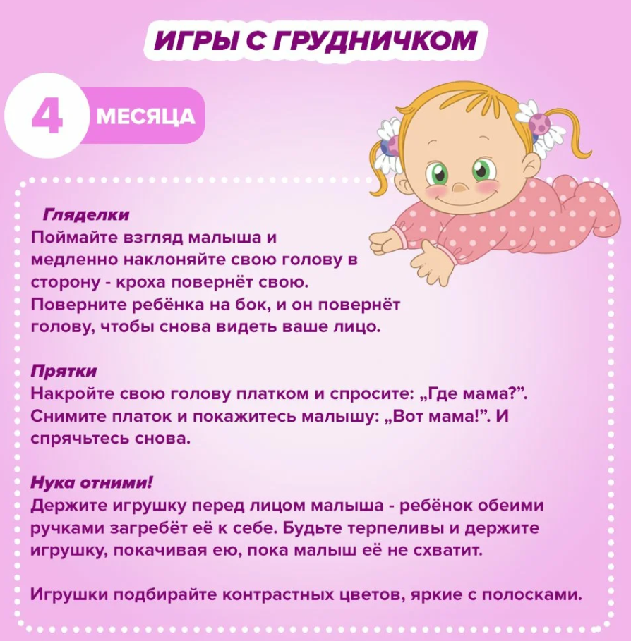 О зрелости психики четырехмесячного ребенка говорят следующие достижения: