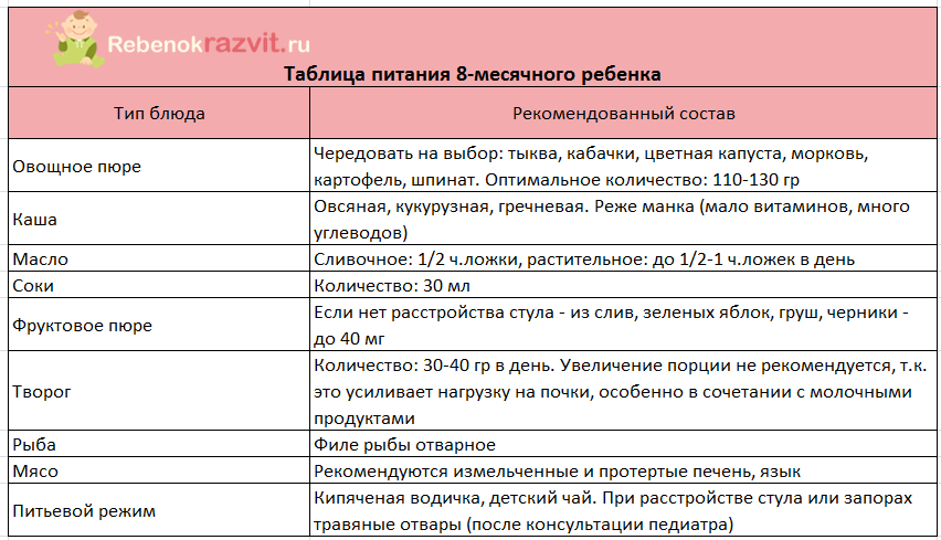 Таблица питания для 8-месячного ребенка: