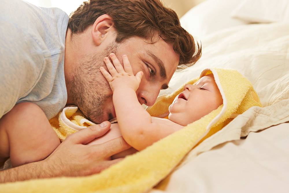 Температура воздуха в ванной комнате должна быть 28 градусов — это уменьшит стресс в момент, когда ребенка будут вынимать из воды и заворачивать в полотенце, чтобы просушить кожу.