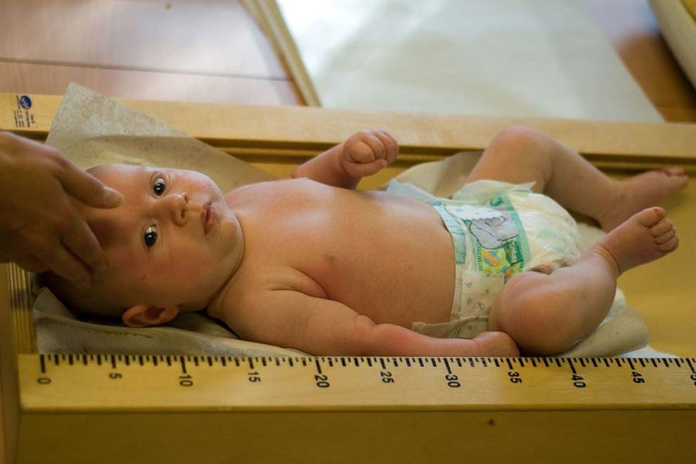 Рост и вес ребенка в 1 месяц родители обычно узнают на первом профилактическом осмотре у врача-педиатра. Он проводится как раз в месячном возрасте. Медсестра взвешивает младенца, измеряет его рост, а также окружность груди и головы. Исходя из совокупности этих параметров, врач оценивает физическое развитие.