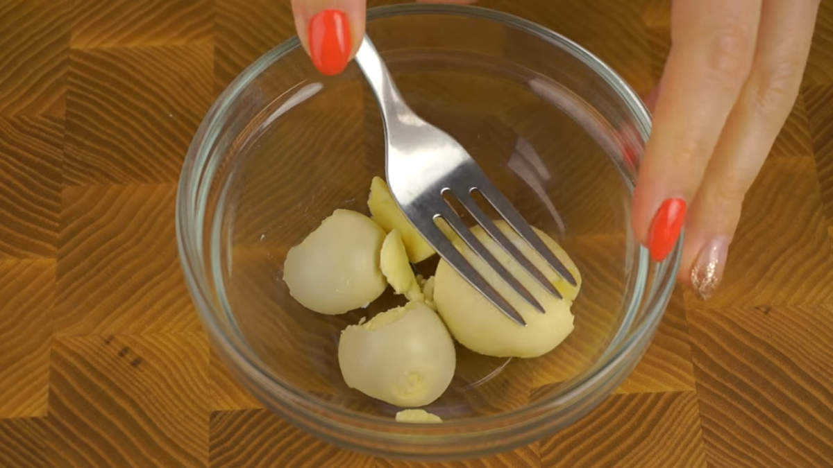- Желток остудить, тщательно перетереть с добавлением грудного молока.