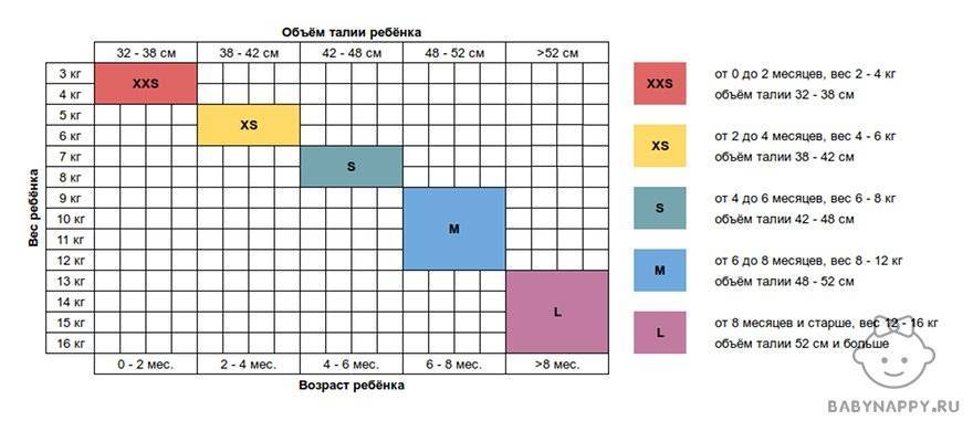 Таблица для выбора размера подгузника (нажмите для увеличения)