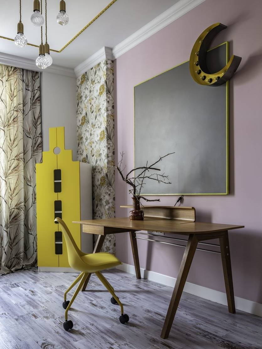 На фото дизайн детской в скандинавском стиле. В интерьере используется светлая палитра и акценты желтого цвета.