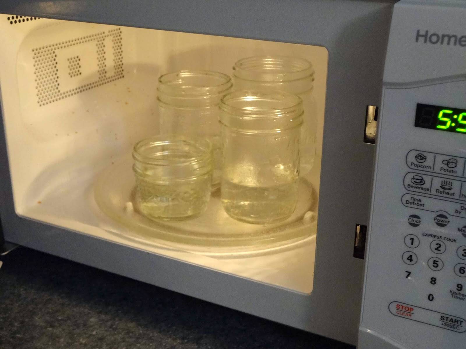 Микроволновая печь нагреет жидкость внутри стакана, и за счет этого температура в камере поднимется до нужных значений. По окончании цикла работы устройства сухие емкости извлекают и сразу же приступают к консервированию.
