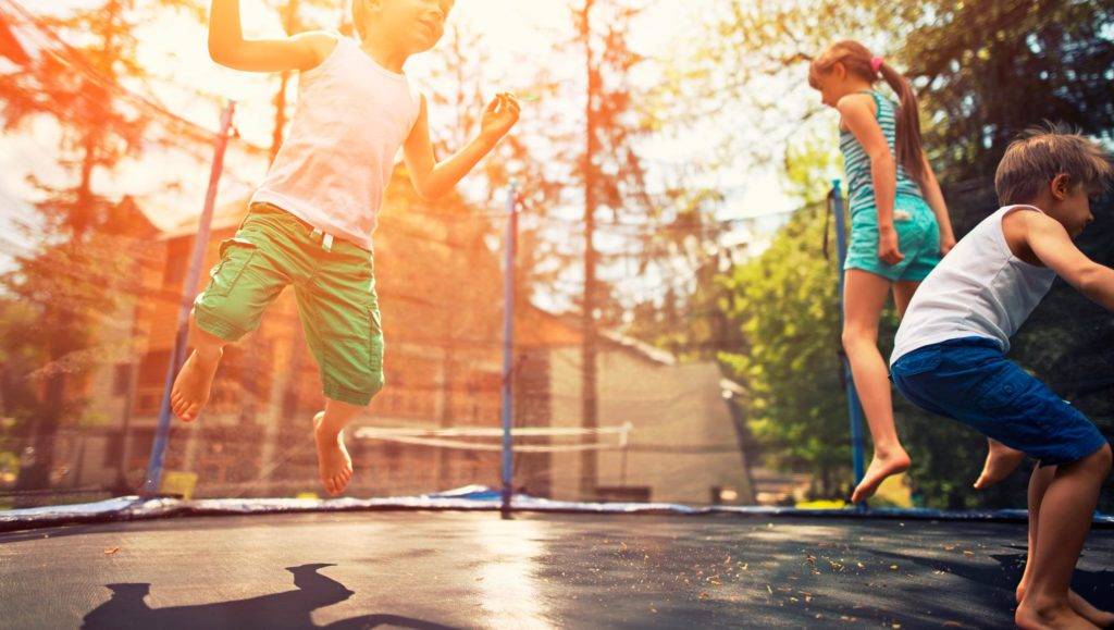 Для этого возраста подойдут каркасные батуты. Обязательно наличие защитной сетки. Лучше отдать предпочтение внутреннему расположению. Так уменьшается риск удариться о стойку, упасть на раму каркаса и пораниться о пружины.