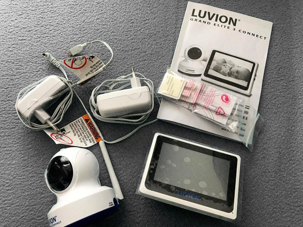 В комплектацию входит родительский блок, детский блок, зарядное устройство, сенсорный коврик монитора дыхания.